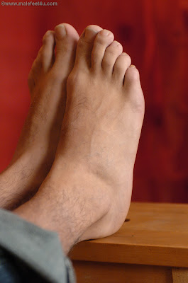Kubik Douda is one hunk of man. Dressed in dark brooding colors he looks like he could do some damage if in the wrong mood. Today however he is cool, calm and collected and ready to show us his feet. Wrapped in some old black business socks they are shapely and a bit worn, but once his peels them back he reveals his clean pale feet, wriggling in the morning sun.